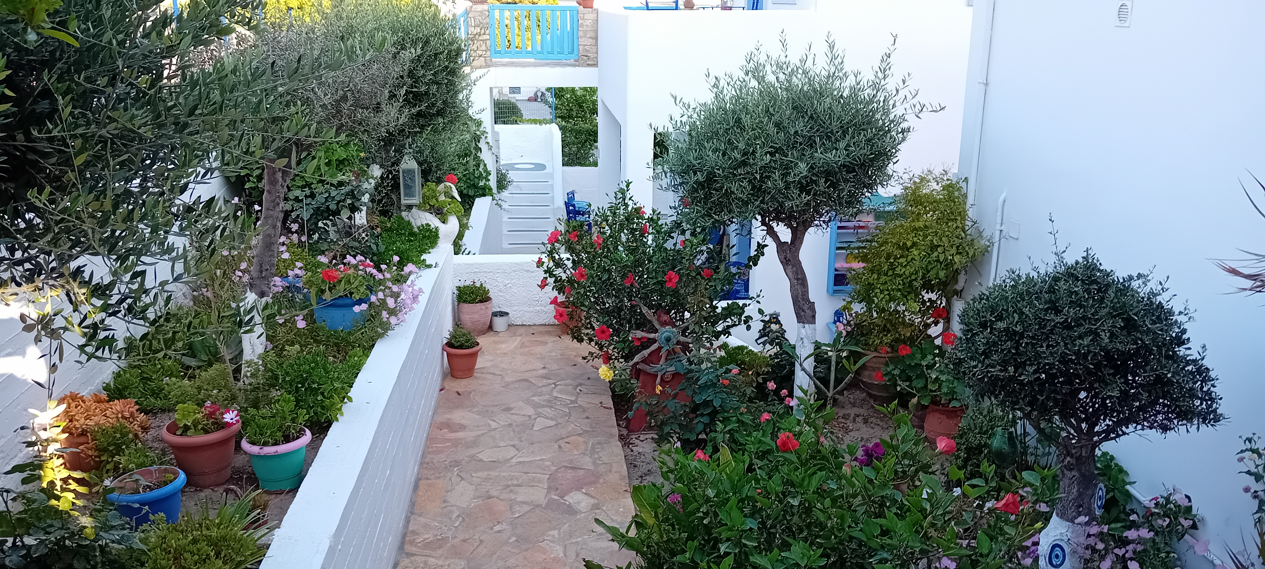 Omistajarouvalla on kaunis ja kiva putiikki yläkylässä. Tämän kodin yhteydessä hän pitää hotellia. Lintou-ranta näkyy kuvassa.